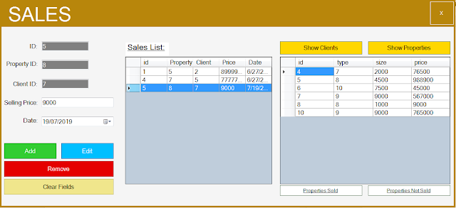 with the menu this form contains also statics part in the middle of the form to show the user how many properties, owners, clients, and sales are in the application.